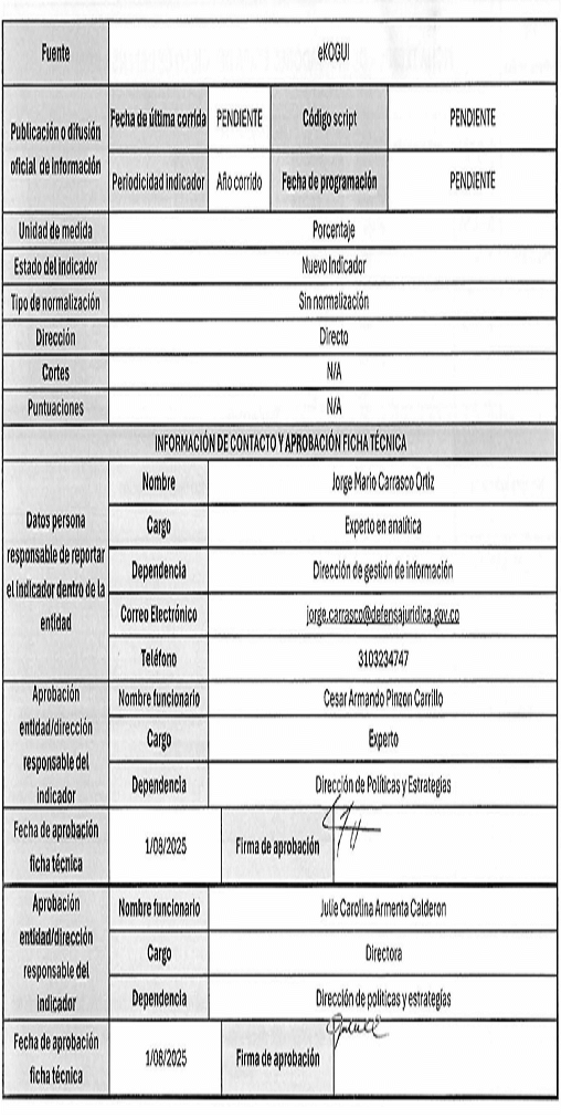 5. La fuente de captura de los datos que se requieren para el cálculo de los indicadores es principalmente el Sistema Único de Gestión e Información de la Actividad Litigiosa del Estado - eKOGUI. Adicionalmente, se utilizan otras fuentes oficiales de información como la Comunidad Jurídica del Conocimiento y las bases de la Corte Constitucional.