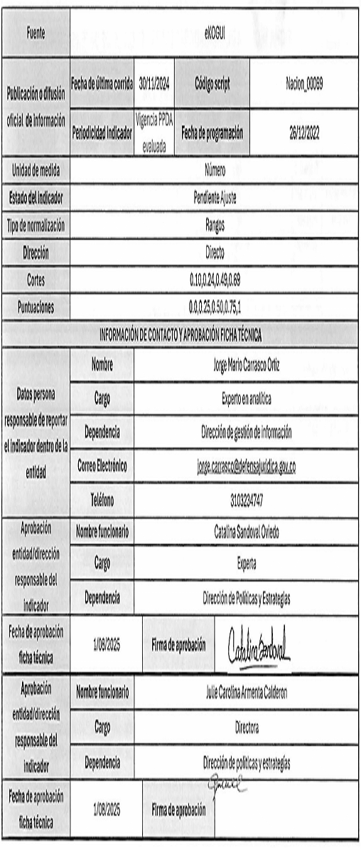 9. En próximas vigencias, podrán redefinirse los indicadores siempre y cuando exista una justificación para ello, no queden etapas del Ciclo de Defensa Jurídica del Estado sin ser evaluadas y no implique una modificación estructural del modelo.