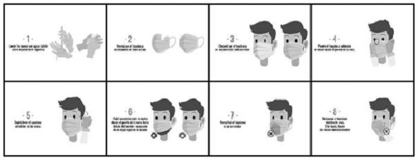 - Colocarse el tapabocas y demás elementos que utilice para prevenir contagio.