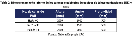 - Para el caso de inmuebles en donde se decida dotar con un salón de equipos de telecomunicaciones único, como puede darse en conjunto de unidades privadas individuales(5) (por ejemplo, casas individuales que hacen parte de un conjunto cerrado bajo el régimen de propiedad horizontal) u otros en donde el diseñador de la infraestructura soporte así lo decida, la canalización de enlace soportará los cables de las redes de alimentación desde el punto de entrada general hasta el salón de equipos de telecomunicaciones único, y desde los sistemas de captación hasta el salón de equipos de telecomunicaciones único.