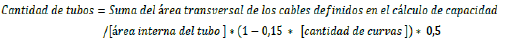 Curva en tubería: Cambio de dirección en la tubería. El ángulo de la curvatura se medirá desde la prolongación imaginaria del ducto hasta la posición final del mismo. Para efectos del presente reglamento se considerará una curva cualquier cambio de dirección de la tubería en el cual el grado de curvatura (DOB por sus siglas en inglés Degree of Bend) sea mayor a 60°. Para efectos del cálculo y conteo de cantidad de curvas en las diferentes canalizaciones se entenderá lo siguiente:
